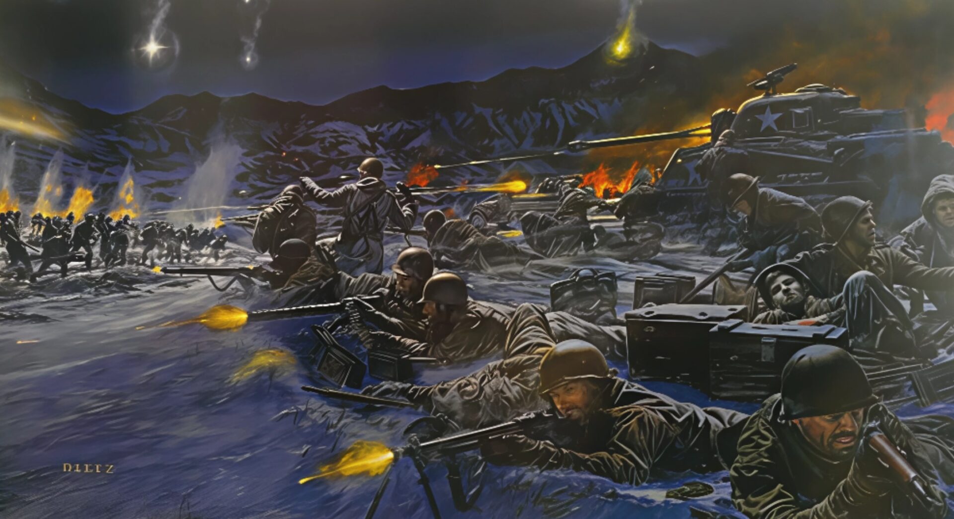Ce choix était dicté par une analyse lucide des forces et des faiblesses en présence. Les Chinois ne disposaient ni de supériorité aérienne, ni d’artillerie lourde. Un périmètre compact maximisait les zones de feux croisés, rendait l’infiltration plus difficile et permettait une concentration optimale de l’artillerie et des armes automatiques. Les intervalles entre les unités étaient couverts par des champs de mines, des réseaux de barbelés, des canons antiaériens de 40 mm utilisés en tir tendu et des mitrailleuses lourdes quadruples de calibre .50.