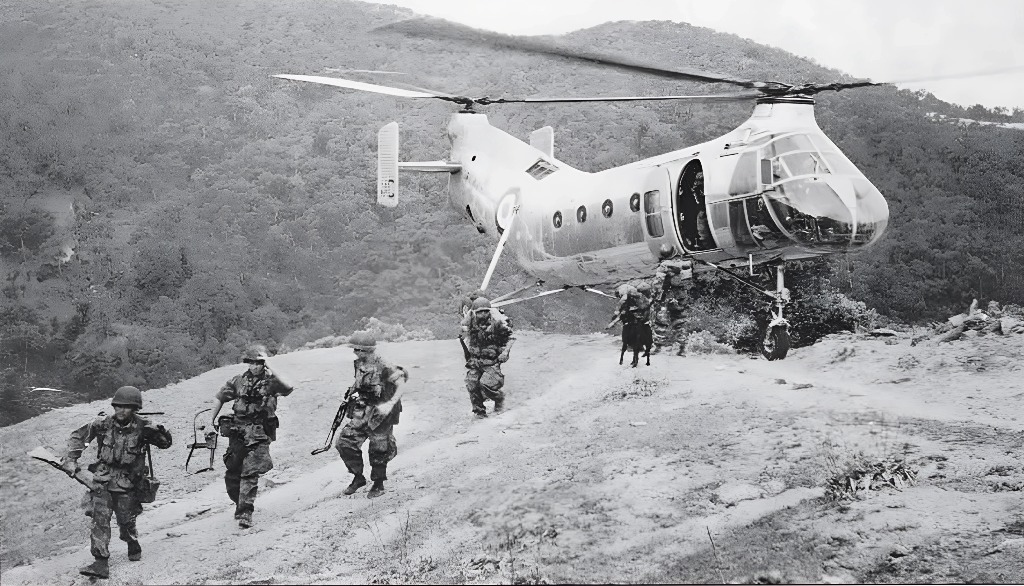 Avec le colonel Félix Brunet de l’armée de l’Air, Bigeard développe les premières véritables opérations héliportées, où les hélicoptères cessent de faire du simple transport pour devenir les instruments de la manœuvre. Cette collaboration interarmées est essentielle. Les pilotes de l’armée de l’Air, formés aux missions de transport, doivent s’adapter aux exigences spécifiques du combat héliporté : approches rapides à basse altitude, débarquement sous le feu potentiel, coordination avec les unités au sol en temps réel.