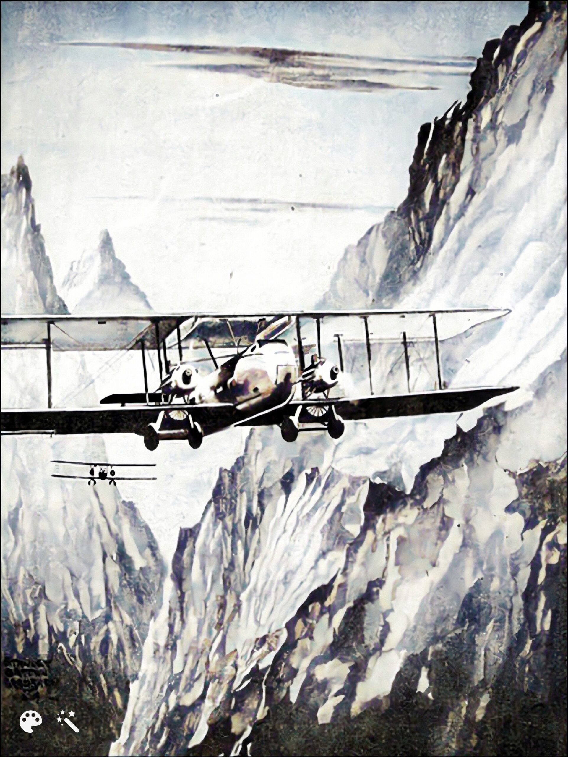 Enfin, n’oublions pas que nous sommes encore à l’heure des découvreurs et qu’il reste bon nombre de zones blanches sur les cartes du village-monde. L’Empire britannique entendant maintenant s’imposer dans les airs comme sur mer, c’est en avril 1933 que la Houston Everest Expedition entreprend de survoler le troisième pôle, c’est-à-dire le plus haut sommet du monde, les membres d’équipage disposant, sur leurs Houston-Wallace, d’un cockpit et d’une cabine fermés et pressurisées, ainsi que d’appareils respiratoires permettant de survivre à des altitudes record. Des savoir-faire qui s’avéreront particulièrement utiles dans le cadre des bombardements opérés pendant la Seconde guerre mondiale…