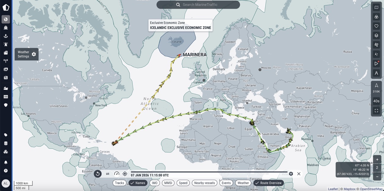 Au moment de l’opération américaine vers 7h00 GMT, le pétrolier se trouvait à environ 200 kilomètres au sud des côtes islandaises, dans la zone économique exclusive de l’Islande, après avoir ralenti brusquement sa vitesse à huit nœuds. La communication avec le navire fut perdue dès que les forces américaines montèrent à bord, selon le ministère russe des Transports.