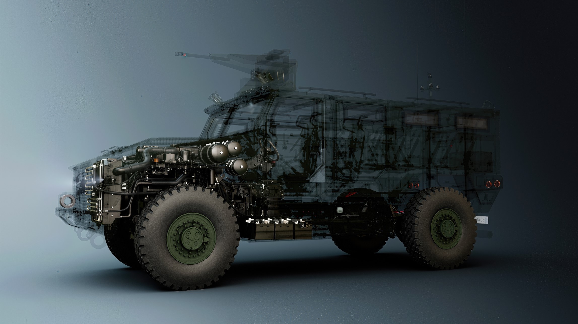 Le groupe motopropulseur est constitué d’un moteur Cummins 9 litres Euro 3 développant 375 chevaux, associé à une boîte de vitesses automatique Allison et une boîte de transfert PowerLine. L’architecture électrique et électronique a été spécifiquement développée par Texelis Defense pour les besoins de SCATA. L’ensemble du système de maintenance et de soutien a également été conçu par Texelis Defense afin de garantir une disponibilité technique opérationnelle (DTO) maximale et une véritable autonomie de maintenance sur le terrain.