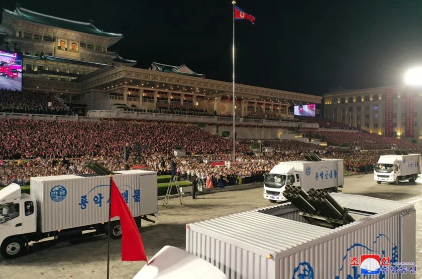 Lance-roquettes multiples nord-coréens intégrés dans des camions civils.