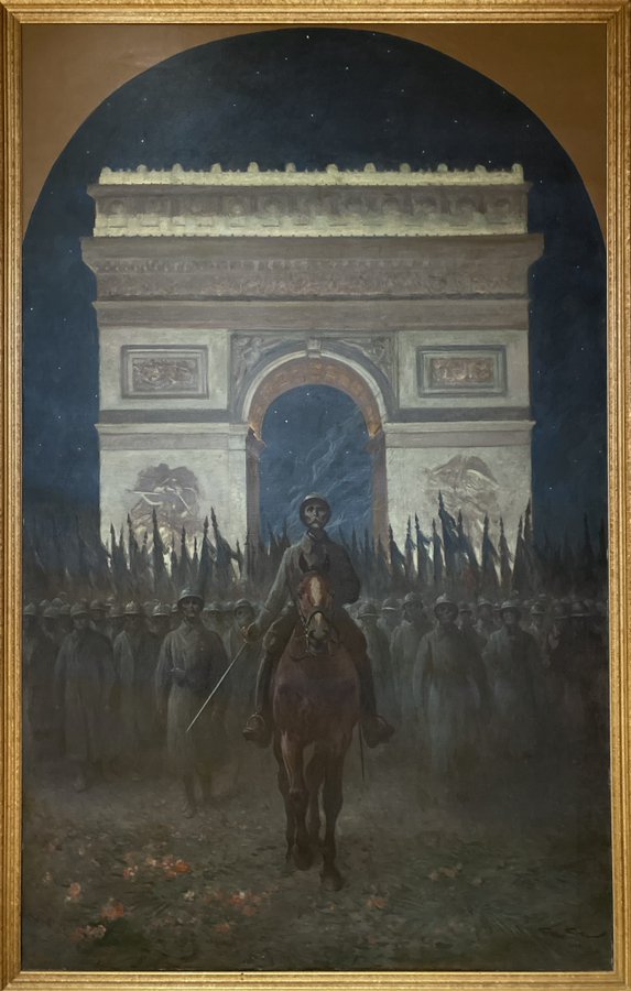Pourtant, l’auteur montre que ce jugement est partiel. Scott ne peint pas seulement des batailles ou des uniformes : il représente la souffrance du soldat (le Poste de secours, cote du Poivre, Verdun, 1918), l’angoisse des vivants (Ad memoria, 1934 – défilé de poilus fantomatiques devant l’Arc de Triomphe), la violence politique (6 février, 1934), et finalement son propre désarroi existentiel à travers la figure de Don Quichotte dans ses dernières Œuvres. Ces glissements thématiques révèlent un artiste plus complexe que le simple serviteur de l’imagerie militaire officielle.
