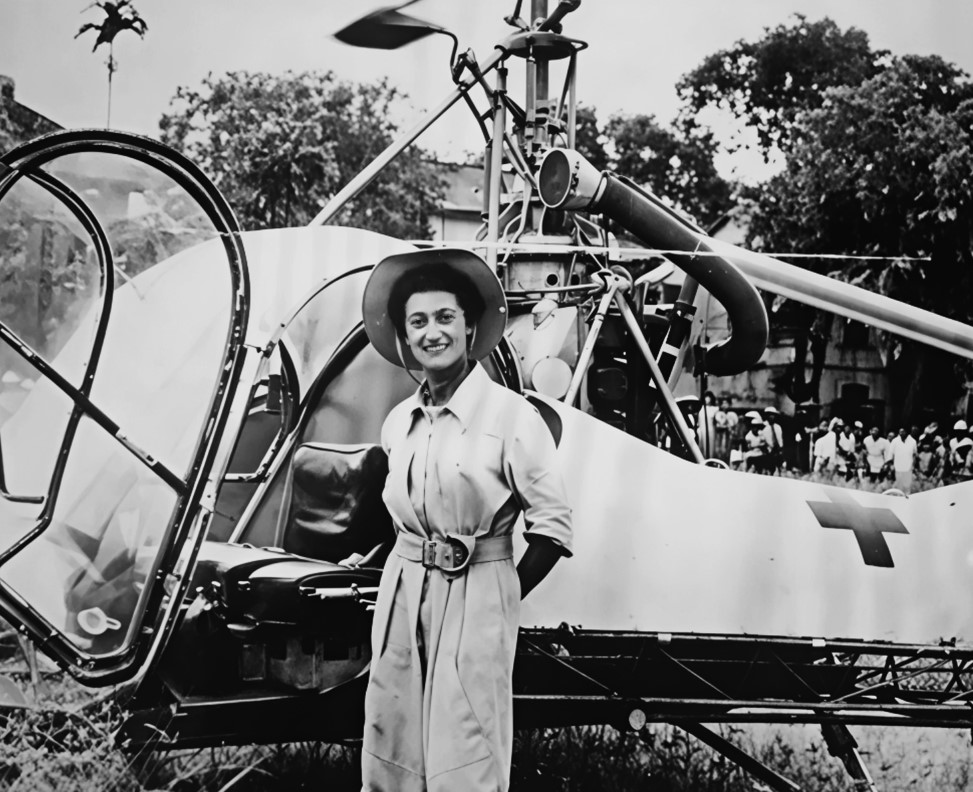 En Indochine en effet, elle s’était rendu compte à quel point des endroits isolés ou couverts par la forêt sont difficiles d’accès pour les avions du transport médical. De retour en Indochine, le , elle se spécialise dans le service d’évacuation médicale de pilotage des hélicoptères Hiller 360 et Sikorsky H-34 dans l’équipe du capitaine Alexis Santini. Entre sa première mission, le , et son départ de l’Indochine en 1953, elle effectue 129 vols d’exploitation, assurant l’évacuation de 165 blessés vers des postes médicaux ou vers l’hôpital le plus proche.
