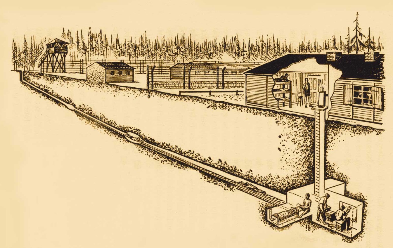 La profondeur à laquelle les tunnels sont creusés — environ 9 m sous la surface — est calculée pour neutraliser les microphones enterrés à une profondeur moindre. Les galeries ont une section de soixante centimètres de côté, tout juste suffisante pour qu’un homme puisse s’y glisser et ramper. Leur longueur totale prévue est d’environ cent mètres chacune, assez pour déboucher au-delà de la double clôture de barbelés et à l’orée de la forêt de pins qui borde le camp.
