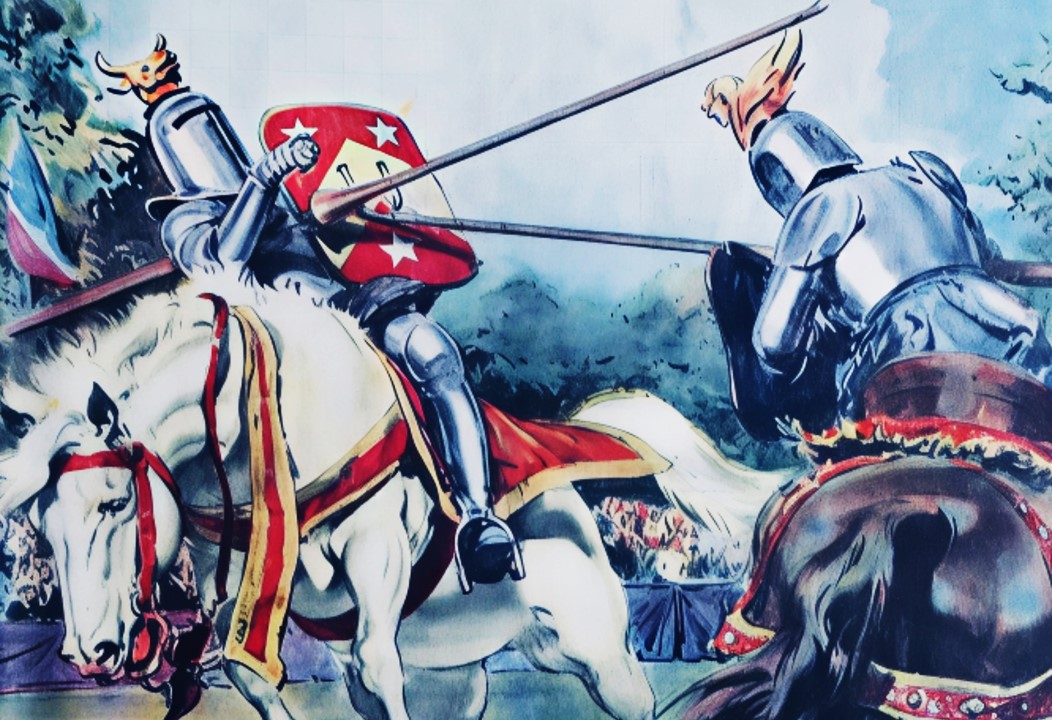Variante de la joute, le pas d’armes était un combat courtois et un divertissement chevaleresque prisé des cours royales et princières du XVe siècle. (Anjou, Bourgogne, Castille, Savoie). L’affrontement était l’occasion pour les nobles participants de jouer, clans une fiction inspirée de la littérature arthurienne, le rôle de défenseur d’un pont, d’un carrefour, d’un passage (c’est le sens du mot « pas ») contre tous ceux qui, comme dans les romans de chevalerie, désiraient relever le défi.